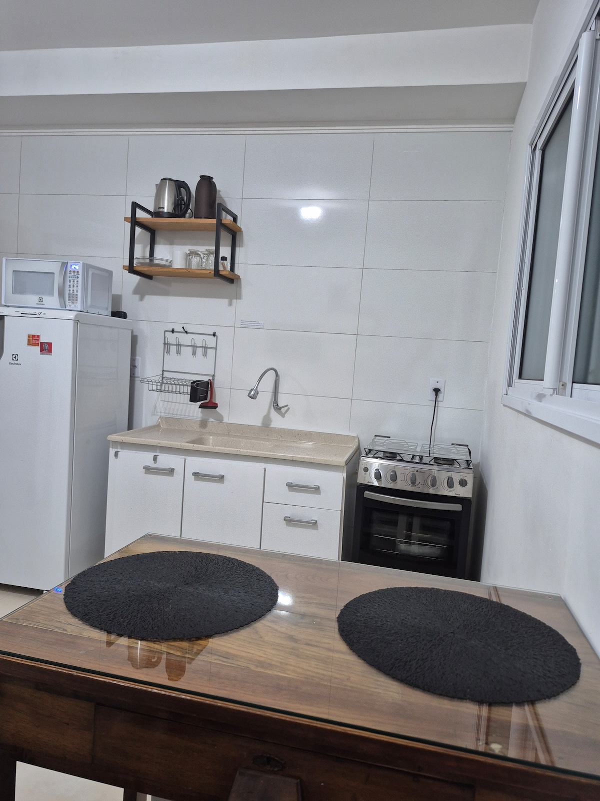 ap 2 quartos e 2 camas de casal 1.58 sala de estar sofa cama acomoda 2 pessoas, com TV online wifi. cozinha completa geladeira e churrasqueira banheiro amplo não dispomos de vaga de garagem local tranquilo e monitorando por câmeras externas, boa vizinhança local silencioso ideal para seu descanso. em otima localização 500m da praça de alimentação do super passarela, eletroposto 60 kw em frente, ar cond nos 2 quartos somente será aceito número de hóspedes indicados na reserva. restrito p orgias.