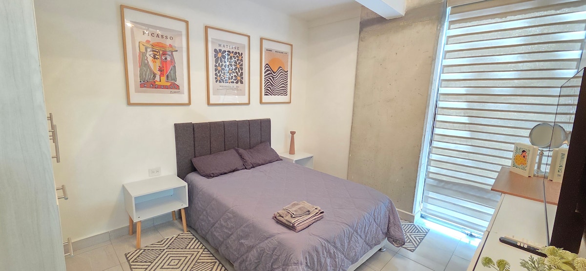 이 멋진 전용 아파트에서 휴식을 즐기세요. 멋진 숙박을 위해 필요한 모든 것을 갖추고 있습니다. 퀸사이즈 침대, TV 1개, 욕실 1개, 와이파이, 미니 스플릿 2개, 주차 공간 1개가 있는 침실 1개 아파트. 공용 공간에는 넓은 수영장, 공동 작업 공간, 엔터테인먼트를 위한 수영장 테이블이 마련되어 있습니다. 이외에도 파델을 즐길 수 있는 옵션이 있습니다.