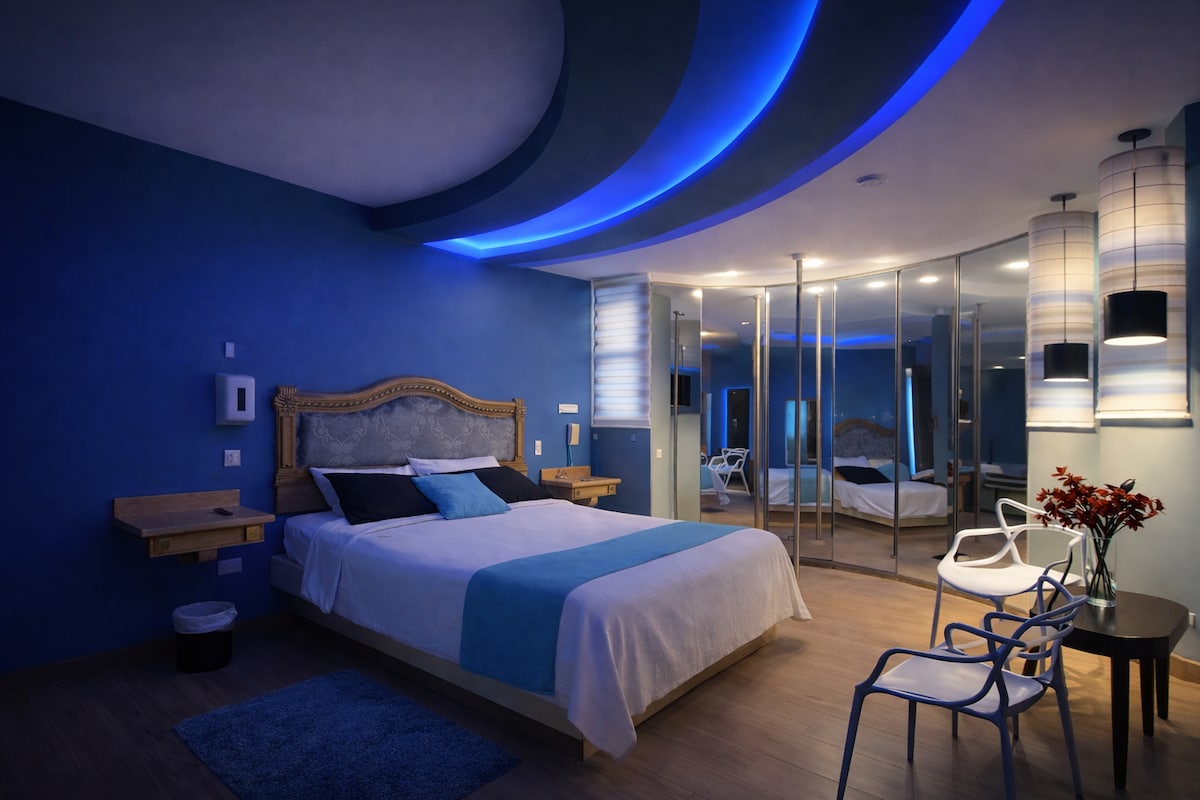 Disfruta una experiencia única en una habitación de lujo temática por 4 horas, ideal para parejas que buscan privacidad, confort y algo diferente. Amelie cuenta con 30 habitaciones temáticas distintas, todas cuidadosamente diseñadas para vivir una experiencia exclusiva en cada visita. Al llegar, la habitación puede asignarse al azar o puedes elegir previamente la que más te guste según las fotos disponibles.