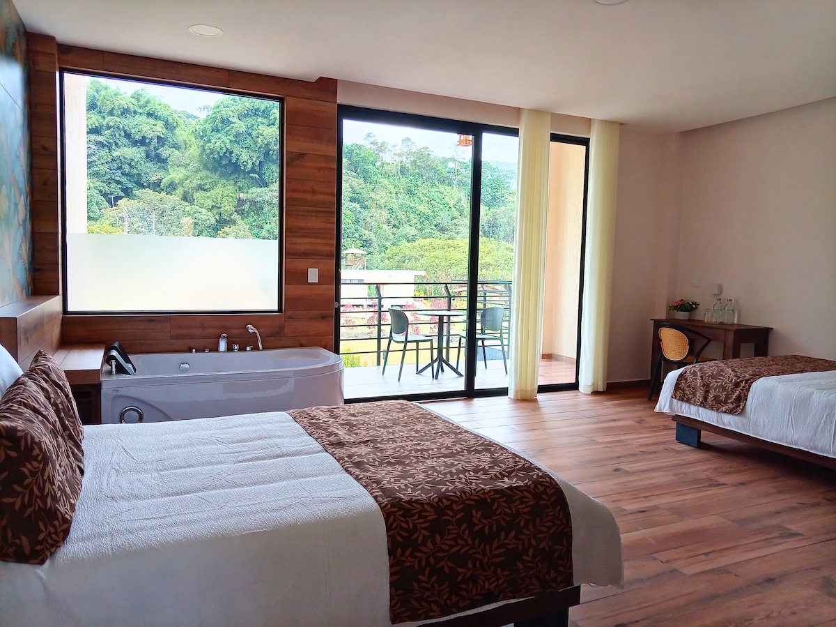 Habitación deluxe con jacuzzi y balcón. Mindo