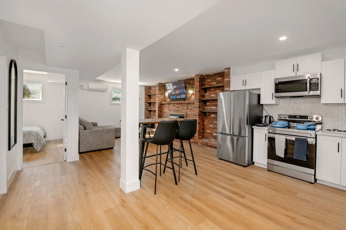 Welcome to our home and a charming basement bachelor apartment nestled in the heart of the city! The Presidential Suite is the largest of the two private suites we have made available in our home. Minutes to expressways and tons of restaurants. Perfect for solo travelers, young family or couples seeking a comfortable and affordable retreat, this cozy space and our hospitality offers everything you need for a memorable stay.