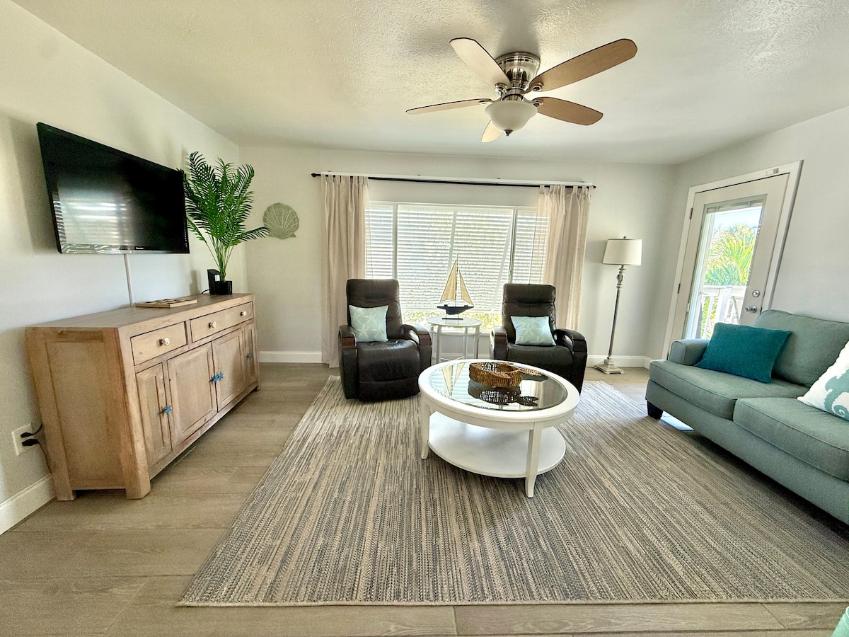 Welcome to Baycation, a charming bayfront hideaway designed for relaxed island living. Nestled directly on the bay in the heart of Fort Myers Beach, this beautifully remodeled 2-bedroom, 1-bath downstairs retreat blends coastal comfort with modern convenience—perfect for couples, friends, or a small family seeking a peaceful escape. Sleeps 4 Pool and spa will be installed by November 2026