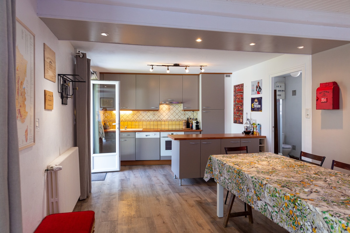 이 조용하고 우아한 숙소에서 휴식을 취하십시오. 솔레이 다르티스트 아파트는 에르드벤 해변과 바르 데틀에서 가까운 곳에 위치한 작은 코콘으로 여러분을 맞이할 준비가 되어 있습니다. 걸어서 갈 수 있습니다. 화가로서 제 작업실에 예술적인 감각을 더하고 싶었습니다. 제철 과일과 채소를 먹을 수 있는 정원, 플란차를 즐길 수 있는 식사 공간, 휴식 공간, 자전거 등이 있습니다. 매력으로 여러분을 유혹할 고품질의 아파트입니다.