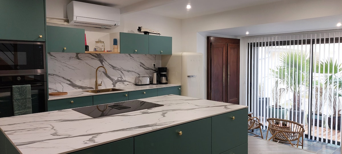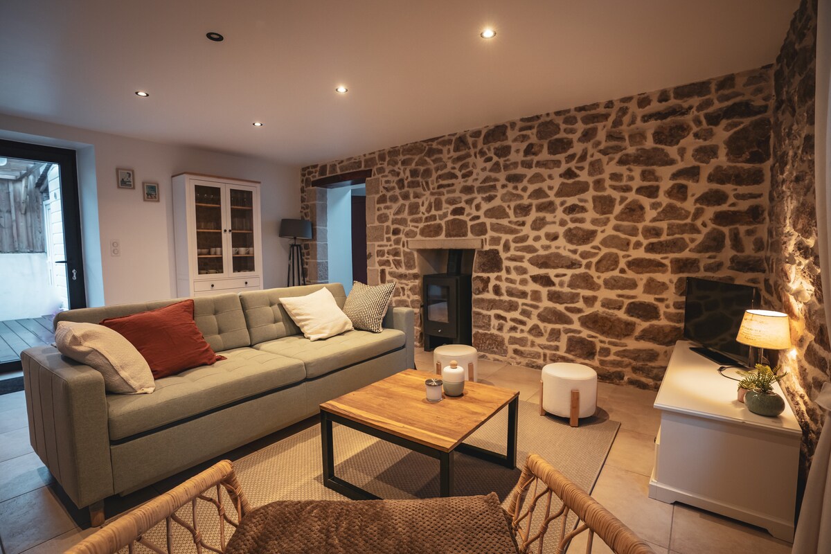 조용한 지역에 있으며, 에텔 리아 바로 근처에 있습니다. 120㎡의 고급 소재로 리모델링된 전원주택을 즐겨보세요. 1층: 침실 1개 + 전용 욕실, 거실, 주방, 별도의 화장실, 뒷주방, 세탁실. 펠릿 스토브, 주방으로 개방된 바, 테라스와 정원으로 개방된 바(580㎡). 위층: 침실 2개, 독립형 욕실, 화장실, 외부: 테라스 2개(약 25㎡ + 약 60㎡), 잔디밭 및 주차장 2개. 나머지는 리아의 자연스럽고 무한한 매력이 여러분을 매혹할 것입니다.