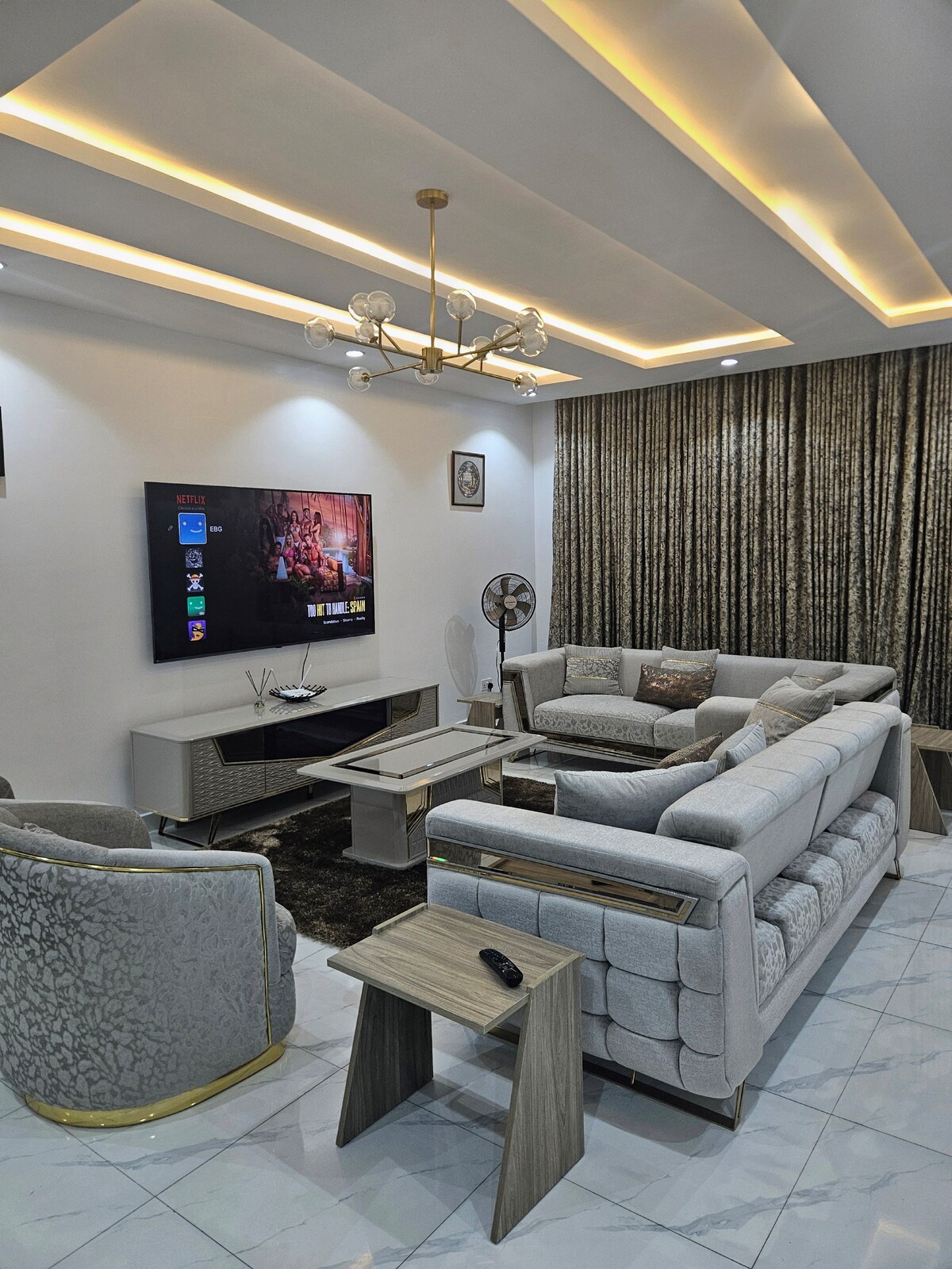 럭스 3-그레이 침실. 현대적인 편안함과 프리미엄 편의시설이 완벽하게 어우러진 숙소입니다. 출장이든 여가이든, 이 세련된 아파트는 집처럼 편안하게 지낼 수 있습니다. 🛏 넓고 우아한 분위기 – 아름답게 디자인된 침실 3개 📶 초고속 와이파이 및 넷플릭스 – 모든 방에서 초고속 인터넷과 넷플릭스를 이용할 수 있습니다. 🍽 주방 시설 완비 – 집에서 요리한 식사나 간식을 준비할 수 있는 세련된 주방. 🚗위치 – 쇼핑, 레스토랑, 레키의 주요 관광지에서 가깝습니다. 안락함과 스타일 – 세심하게 디자인된 공간