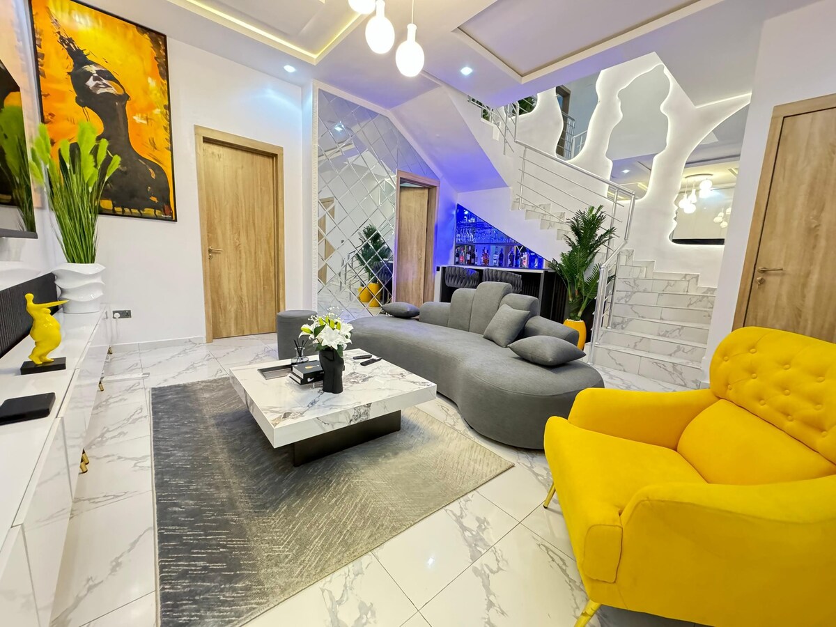 Welcome to TD Luxury Suites, where luxury meets convenience in Lagos. This stylish 4-bedroom apartment offers 24/7 electricity, fast internet, and chic decor for a sophisticated stay. With 24/7 security in a gated estate, you can relax after exploring nearby attractions like movie theaters, shopping malls, restaurants, and bars. The overall decor exudes a trendy and sophisticated style, creating an inviting atmosphere that's perfect for unwinding after a busy day exploring the vibrant city.