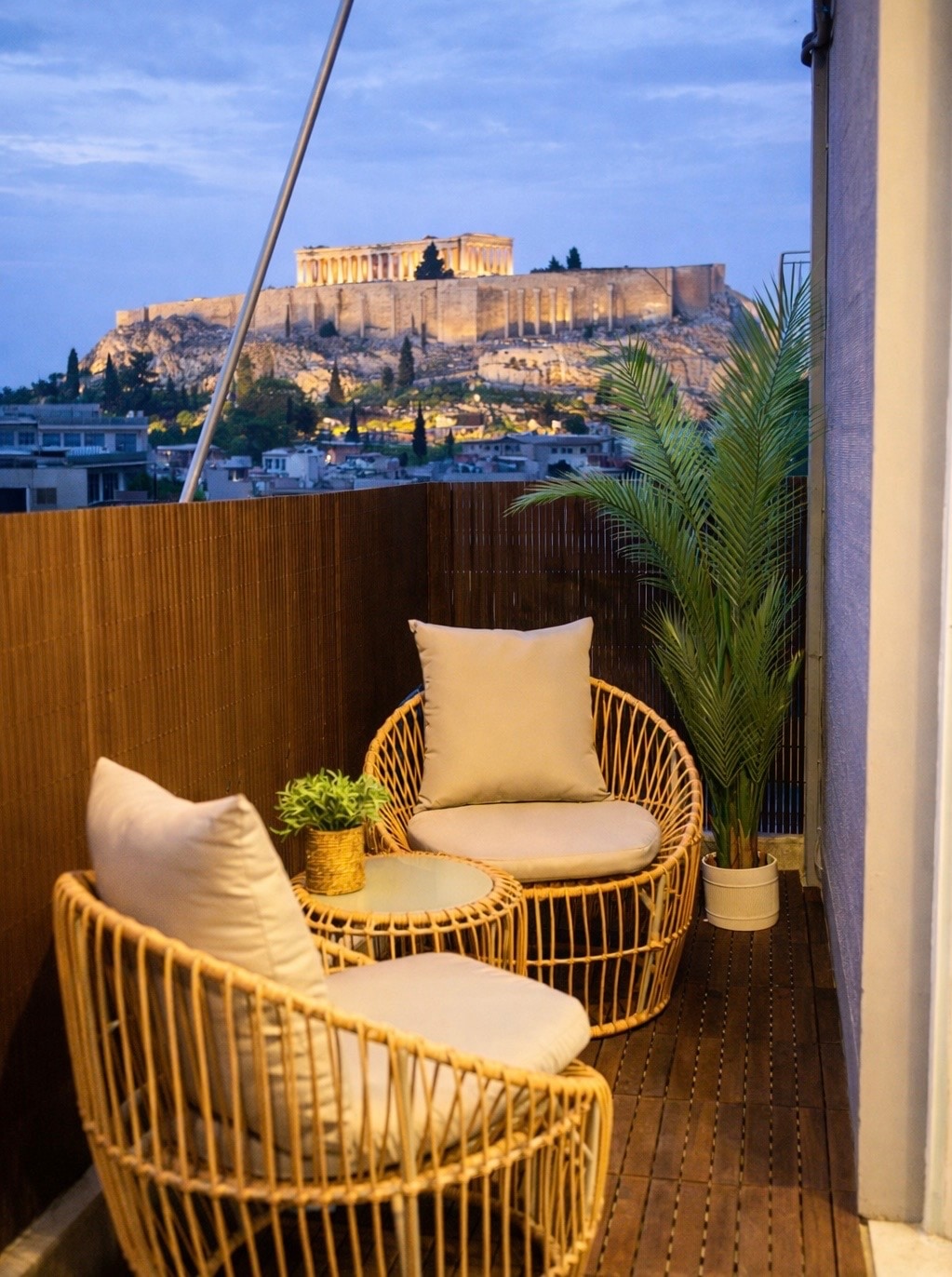 Welcome to your sky-high retreat in Athens! Gaze at the Acropolis from this sleek, glass-filled loft, designed for the modern traveler. Enjoy your morning espresso on the sun-kissed balcony, and unwind in style with top-notch appliances and chic décor. Whether working remotely with a view or exploring the vibrant city, this 5th-floor heaven offers an extraordinary stay. Convenience, comfort, and a touch of luxury—right here in the heart of Athens, a few meters from the Acropolis!
