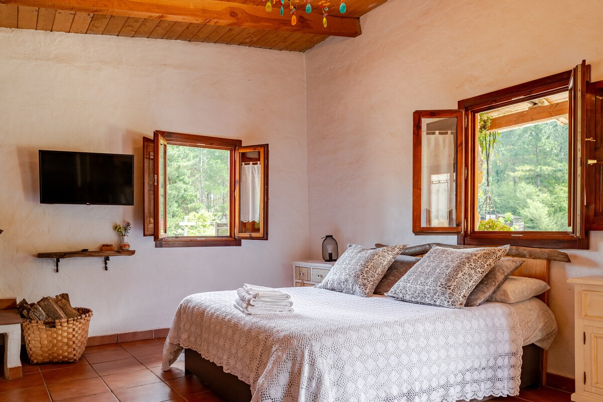 La casa se situa en un entorno rural a 1 km del centro. Tiene orientacion sur y las vistas de la propiedad son preciosas. La propiedad en concreto, consta de dos casas, una la de los huespedes y otra la de los propietarios. Y en el terreno hay una explotacion de kiwis ,tambien tenemos gallinas camperas y dos perros.