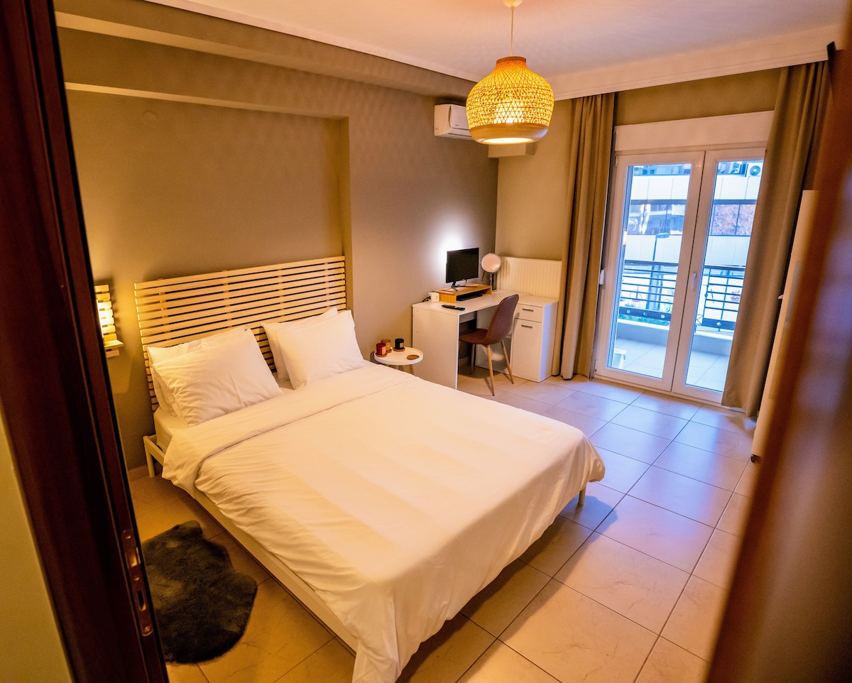 Elegantly refurbished with every detail crafted for your comfort Step into a spacious walk-in rain shower with premium cosmetic products and sleep deeply in a Luxury king-size bed (1.80×2.00) Feel like home with fully equipped kitchen, ergonomic working space or glow up corner. Enjoy highest comfort while the city’s heart and sea promenade is in walking distance Write us now a message for your perfect stay in Thessaloniki - Estia Premium Apartments