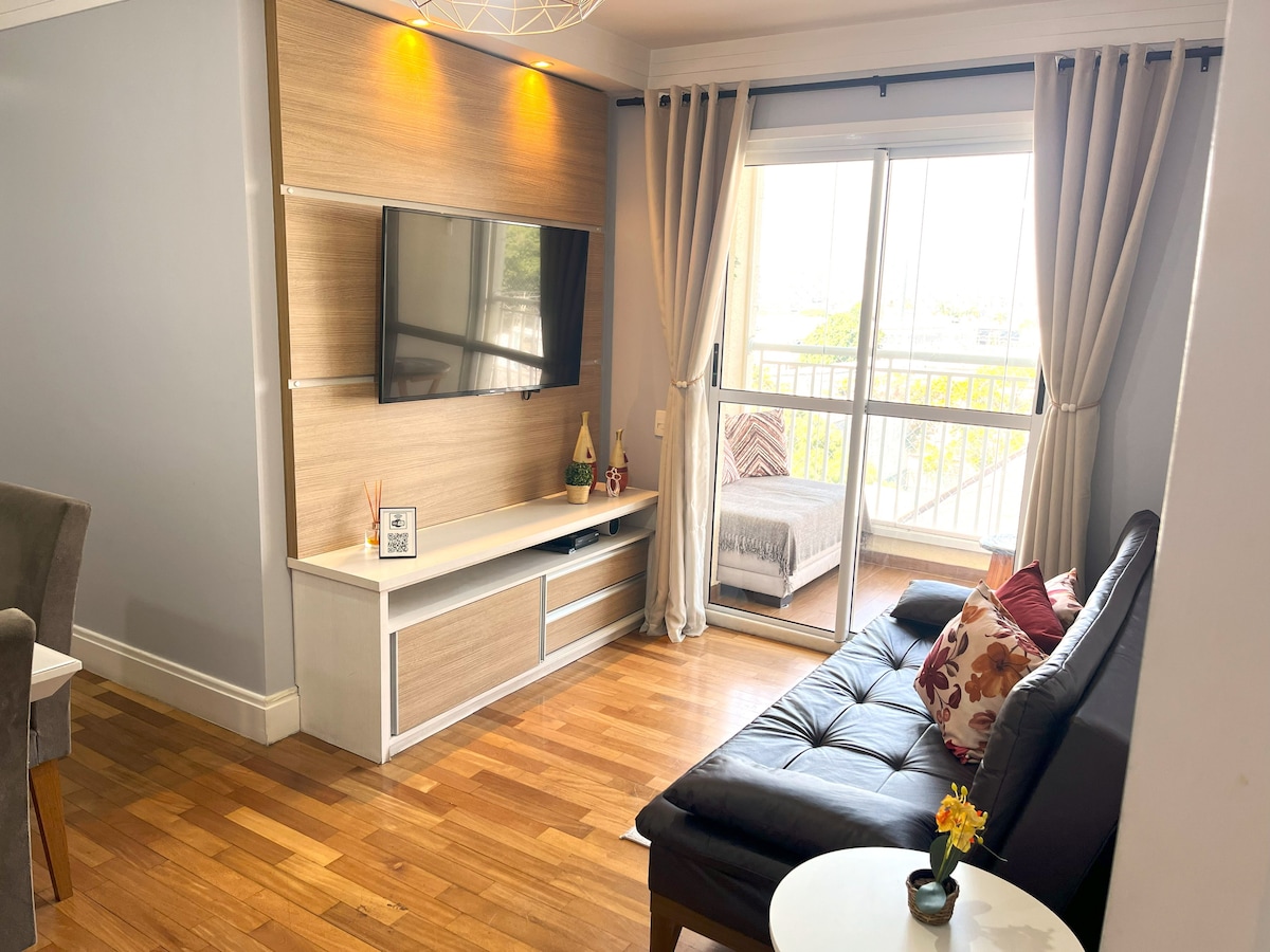 Estiloso apartamento localizado no coração da Zona Norte de São Paulo, perfeito para quem busca uma estadia confortável e conveniente na cidade. Este apartamento de quarto e sala combina uma decoração moderna e aconchegante com móveis novos, proporcionando um ambiente único para os nossos hóspedes. Ideal para casais, amigos, viajantes e visitantes/expositores de feiras no Expo Center Norte. Acomoda confortavelmente um casal, mas temos tb um sofá-cama na sala que acomoda mais 2 pessoas.