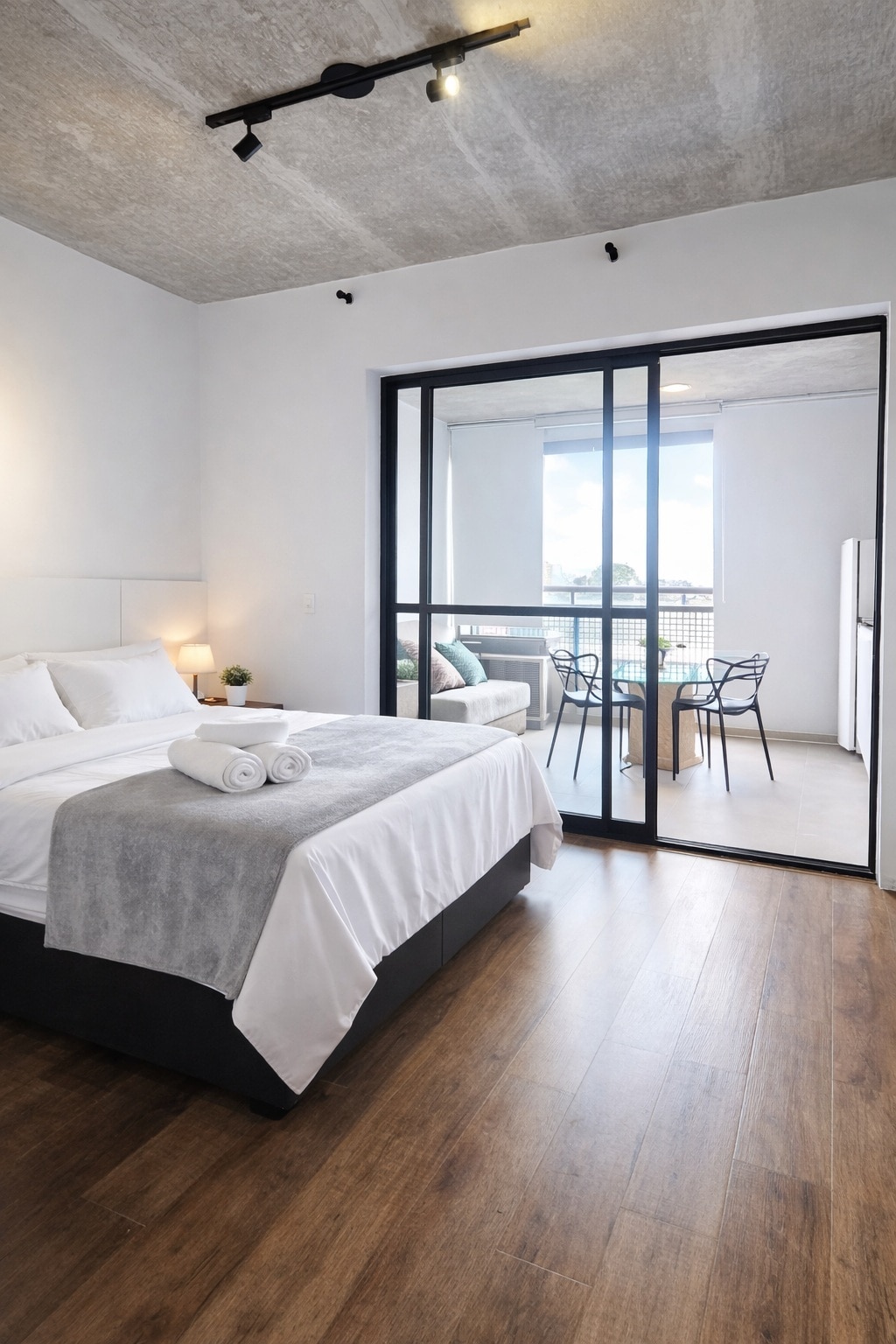 Loft com piscina e home office na varanda