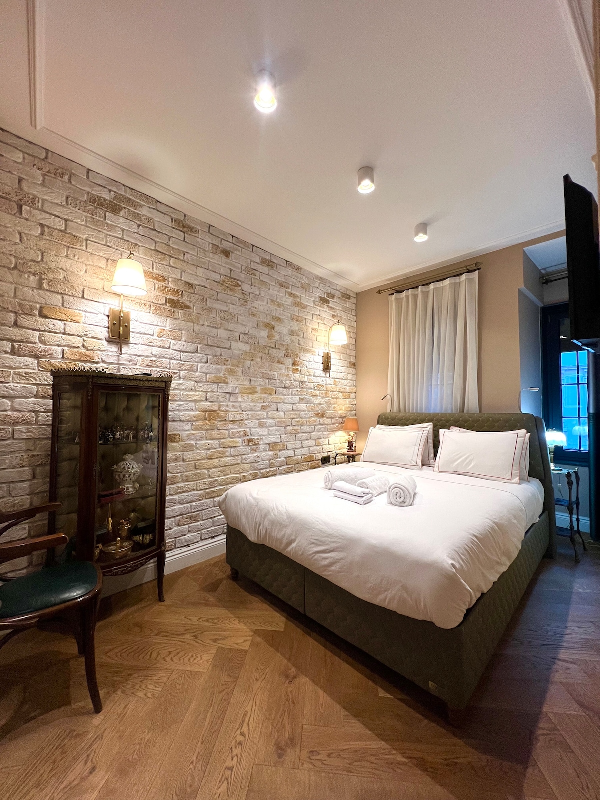 우리의 역사적인 아파트는 3,5 미터 천장을 가지고 있으며 막 리노베이션되었습니다. 리노베이션 과정에서 19세기 천장과 벽 그림 (프레스코) 이 2겹의 낡은 그림 아래에서 발견되었습니다. 교회 개조 예술가들이 6개월 동안 집의 전면적인 프레스코를 드러내기 위해 노력했습니다. 저희 독특한 아파트는 역사적인 갈라타 타워와 여러 역사적인 명소에서 몇 걸음 거리에 있습니다. 주변에 트렌디한 레스토랑, 상점과 카페가 많습니다.