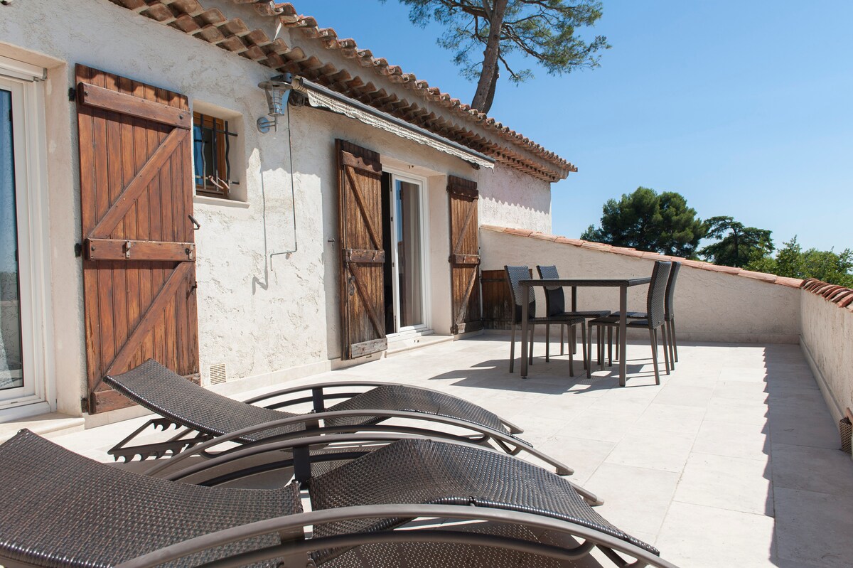 라틀리에는 울창한 지중해 정원에 자리한 매우 조용한 전 예술가 스튜디오가 있습니다. 현대적인 편의시설과 앤티크를 결합하여 새롭게 리모델링되었습니다. 전용 테라스 2개(바비큐 포함)를 갖추고 있어 세인트 마을의 멋진 전망을 감상할 수 있습니다. 생폴드방스와 주변 숲. 편안한 퀸사이즈 침대, 시설이 잘 갖춰진 주방, 현대적인 라운지 의자 2개가 있는 좌석 공간, 별도의 욕실이 멋진 생활 공간을 제공합니다. 온수 수영장과 주차장을 이용하실 수 있습니다.