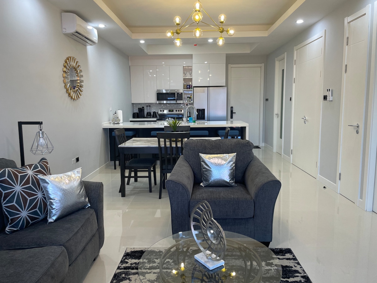 The Jewel at Dream 36의 장점: MBJ 공항에서 차로 10분 이내 거리에 있는 이 멋진 보석은 24시간 보안 요원이 있는 게이티드 커뮤니티에 위치한 고급스러운 2층 펜트하우스 스위트입니다. 모든 객실에서 바다 전망을 즐기실 수 있습니다. 모든 침실과 거실에 스마트 TV가 있습니다. 옥상 인피니티 에지 수영장, 실내 및 실외 라운지 공간에서 휴식을 취하세요. 독점성과 럭셔리를 추구하는 가족, 친구 또는 단체에 완벽합니다!