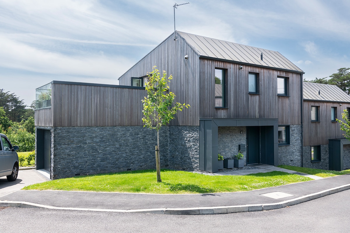 바닥에서 천장까지 이어지는 유리문, 둥근 데크, 전용 선착장이 있으며 물가에 위치한 현대적인 숙소로 마을까지 도보로 가까운 거리에 있습니다. 거실/주방 및 마스터 베드룸에서 감상할 수 있는 멋진 전망. 더블 침실 3개 - 모두 욕실이 딸려 있습니다. 숙소 전체에 바닥 난방 모든 침실에 넷플릭스 TV 전용 iPad 실행 도크가 있는 소노스 시스템 8명이 편안하게 앉을 수 있는 식탁이 있는 고품질의 가구 노상 주차 공간 3개 고급 나무 버너 전기차 충전시설 마리나까지 도보 5분 거리