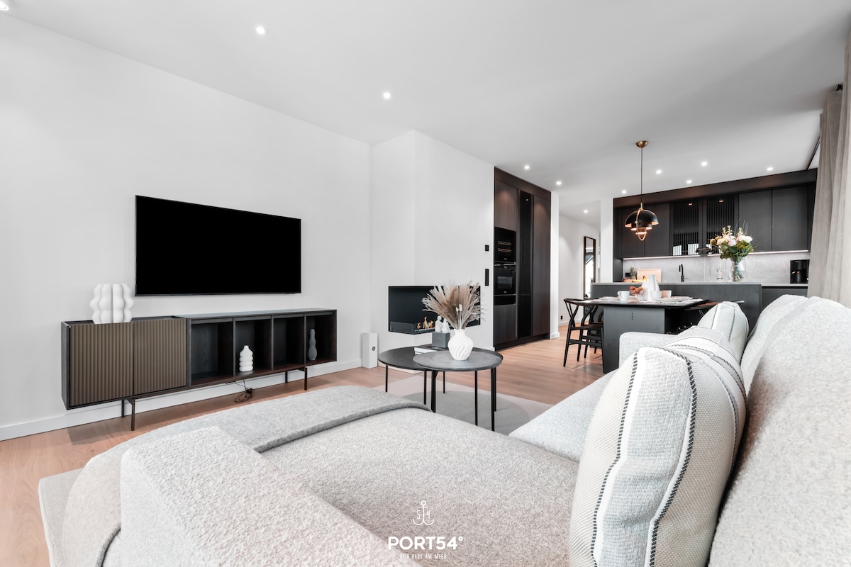 Harbor & Sea – Exclusive Beach House with Water Views This luxurious end-terrace home offers 220 m² of space for up to 8 guests. Four bedrooms, each with en-suite bathrooms (two with sea views), a fully equipped kitchen with a wine fridge, and a living area featuring a glass gas fireplace ensure ultimate comfort. A Bangkirai terrace, sauna, two balconies, and a private elevator complete this exclusive retreat. Two underground parking spaces are included. Welcome to HAFEN27LIST!