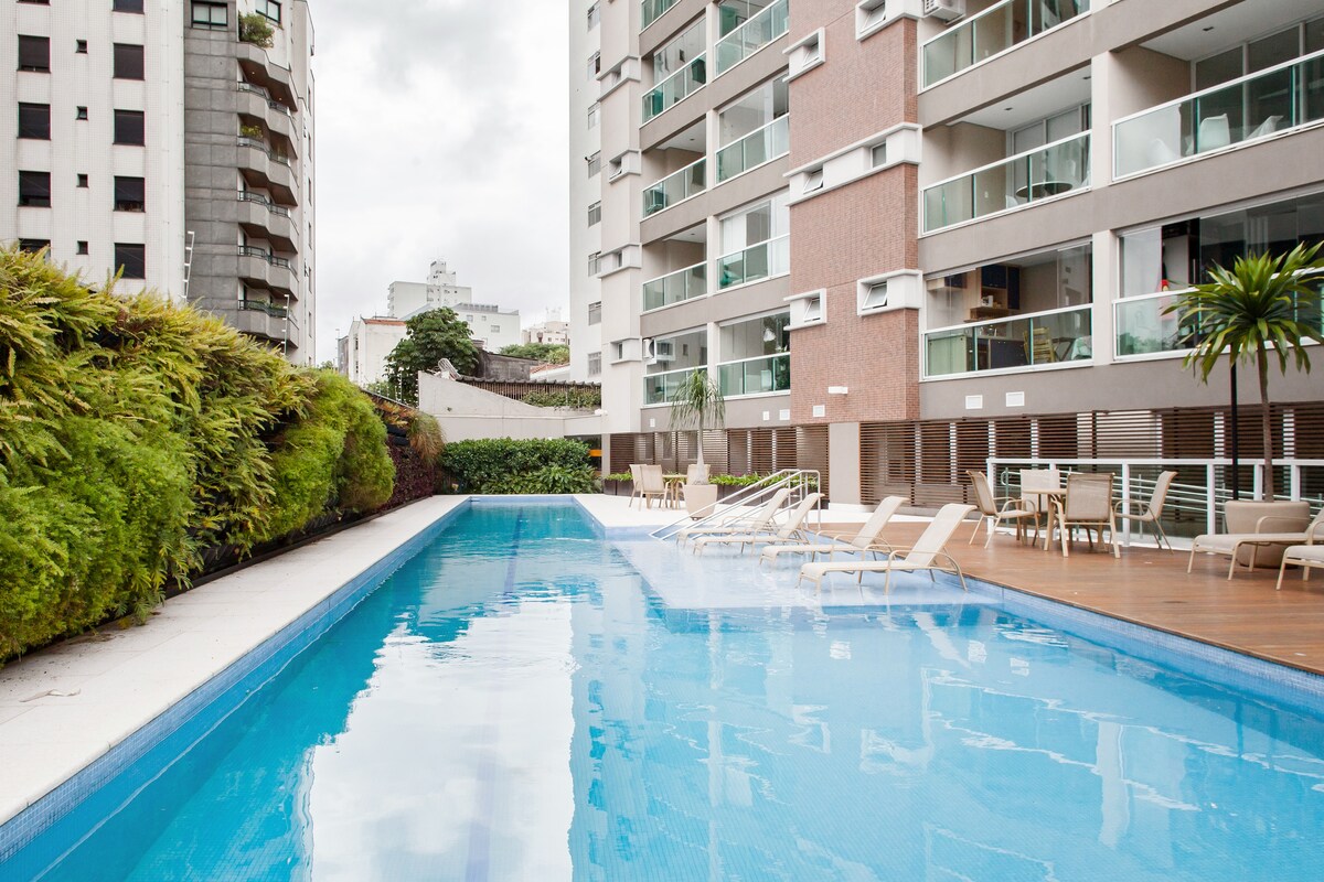 현대적이고 매우 잘 갖춰진 듀플렉스는 상파울루의 엽서 근처에 있습니다.