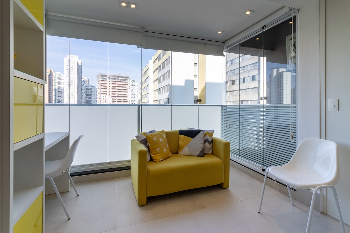 피네이루스의 가장 매력적인 로프트로 현대적이고 편안하며 예술 작품과 디자인 가구로 장식되어 있습니다. • 에어컨, 소음 방지 창문, 암막 커튼이 있습니다. • 와이파이 700Mb, 스마트 TV, 넷플릭스 • 발레파킹 서비스가 있는 카마레이라와 차고. • 헬스장 및 수영장 상파울루 최고의 동네인 핀헤이로스 중심부에 위치하고 있으며, 레스토랑과 바, 영화관, 지하철역, 자전거와 가깝고, 파르케 빌라 로보스와 이비라푸에라, 콩고냐스 공항, 도시의 비즈니스 센터에서 몇 킬로미터 거리에 있습니다.