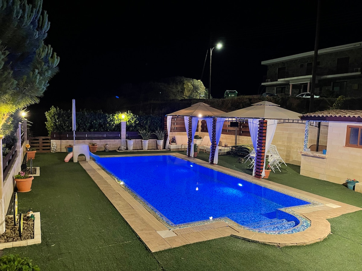 힐사이드 빌라는 완전히 개조된 저택으로, 디자이너가 세심하게 준비되어 있으며, 모든 게스트에게 조용한 숙소입니다. 산의 멋진 전망과 대형 수영장을 갖추고 있습니다. 이 저택은 리마솔 시의 키프로스 중심부, 감귤 마을인 엡타고니아에 위치하고 있으며, 리마솔에서 불과 20분 거리에 파르마카스 기슭에 위치하고 있으며, 500미터 거리에 레스토랑, 베이커리, 슈퍼마켓이 있습니다.