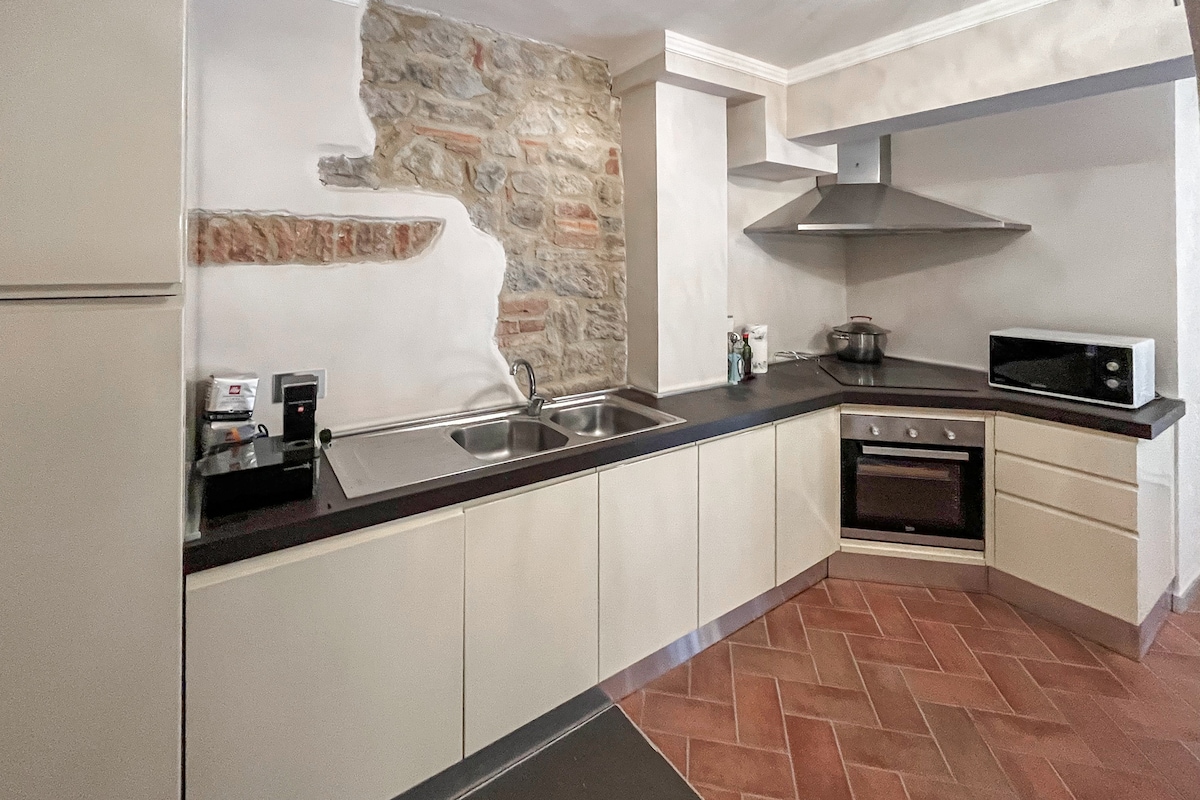Apartment with beamed ceilings and terracotta floors, this apartment is set in a 19th-century farmhouse located in the hills of Siena in Rigomagno Toscana. From the solarium next to the swimming pool in the middle of the olive trees, you can admire the panorama of the Sienese hills and the medieval village of Rigomagno ... all this characterizes the ideal holiday for couples or families who want to relax. Solarium, garden, terrace, swimming pool are exclusively for guests of the apartment.