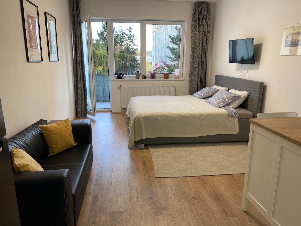 - 발코니가 있는 개인 아파트입니다. - 현지인으로서의 삶을 경험할 수 있는 매력적인 동네에 위치하고 있습니다. - 구시가지 중심지는 지하철 2정거장 거리에 있습니다. - 아파트에서 도보로 10분 거리에 블타바 강이 있으며 강둑에서 둘러볼 수 있는 멋진 장소가 있습니다. - 숙소에 머무는 동안 필요한 모든 시설이 완비되어 있습니다.