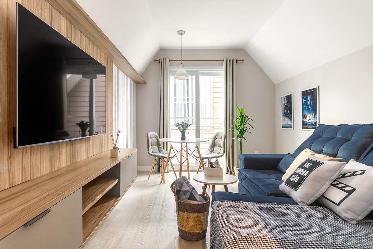 Apartamento novo e com design moderno, de frente, no coração de Canela, a apenas 400 metros da Catedral de Pedra. O imóvel dispõe de 2 dormitórios, ambos suítes, uma com cama casal e a outra com duas camas de solteiro. No living, um sofá-cama queen. Todos os quartos com smart Tv. Cozinha completa equipada com todos utensílios de cozinha. Fornecemos roupas de cama e banho de qualidade. Wifi em todo o apartamento. Ar condicionado nos quartos e living. Estacionamento gratuito.