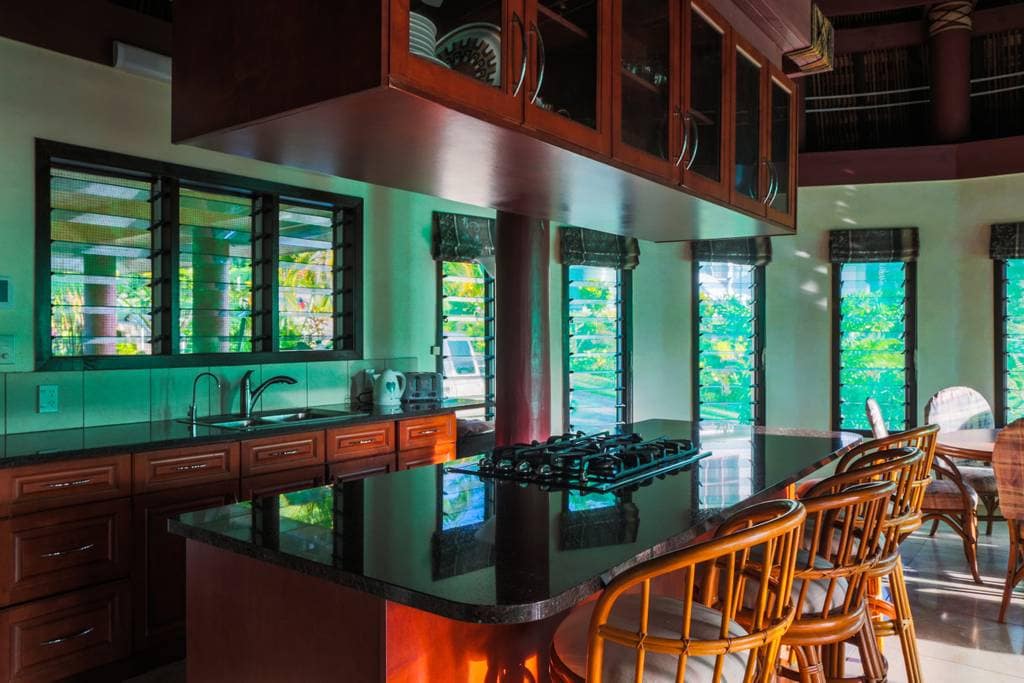 마을에서 불과 5분 거리에 위치한 이 새롭게 리모델링한 4베드룸 숙소는 개방형 거실, 편안함, 넓은 공간을 제공하며 상점, 레스토랑, 바에 편리하게 가깝습니다. 거실, 식사 공간, 현대적인 주방을 원활하게 연결하는 밝고 쾌적한 개방형 거실이 있습니다. 인테리어는 섬에서 영감을 받은 요소와 현대적인 편안함을 조합하여 사모아를 둘러보며 하루를 보낸 후 편안한 모임이나 휴식을 취할 수 있는 편안하고 매력적인 분위기를 조성합니다.