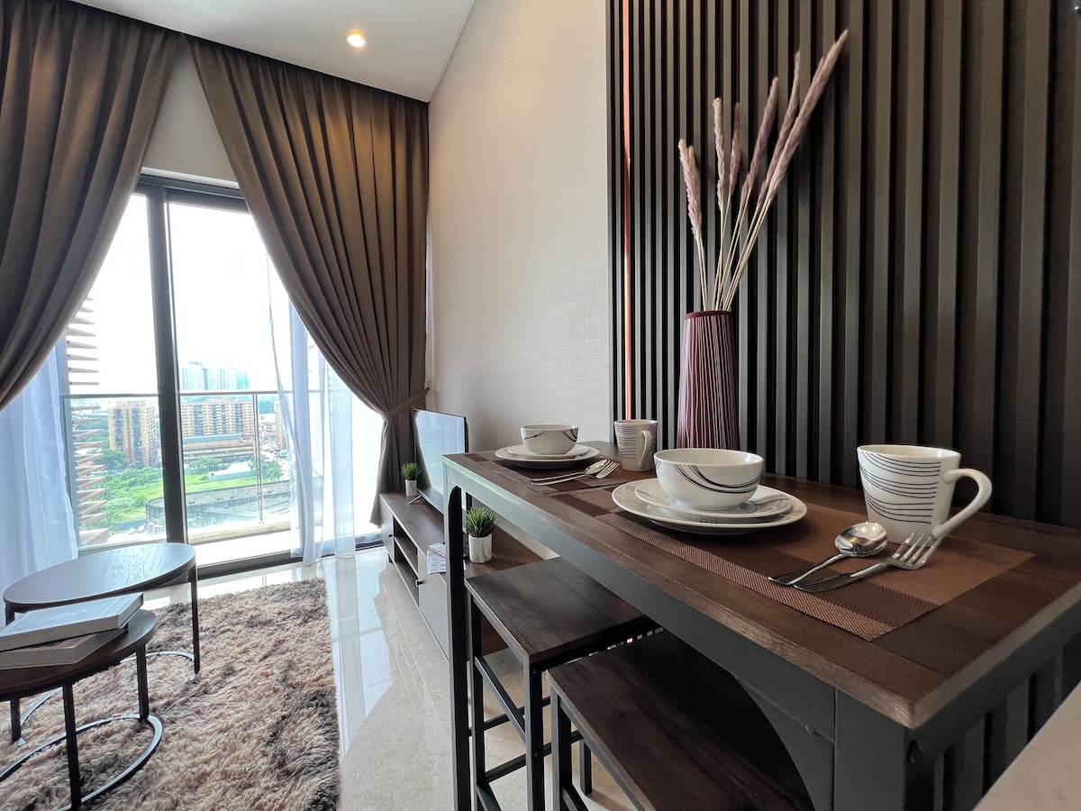 멋진 KL 도심 전망을 감상할 수 있는 현대적이고 시설이 완비된 고층 콘도 숙소입니다. 전략적으로 위치하고 도시와 잘 연결되어 있습니다(대부분의 핫스팟, 트윈 타워/KL 타워/부킷 빈탕/미드 밸리까지 약 15분 이내). 28층 옥상에 인피니티 풀, 체육관, 자쿠지 등 최신식 시설이 갖춰져 있으며 도심 전망도 똑같이 멋집니다. 이 모든 것이 숙소에 3단계 보안 시설과 함께 제공됩니다. 고속도로(NSE/NPE/MEX)와 그랩이 많습니다. 세븐일레븐 및 음식점까지 도보 거리.