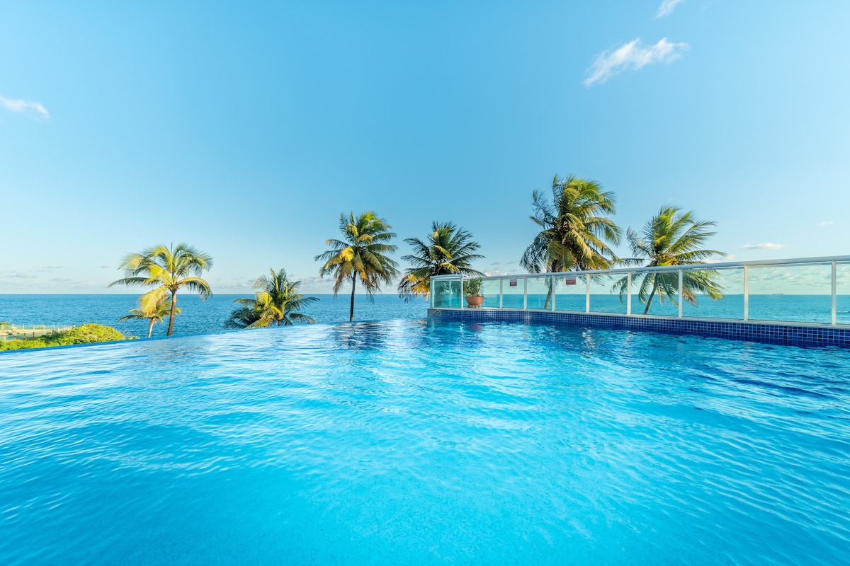 온디나에서 편안함과 특별한 전망을 즐겨보세요! 이 현대적인 오션프런트 아파트에는 더블 침대, 스마트 TV, 에어컨이 구비된 침실 1개와 소파와 발코니가 있는 아늑한 거실이 있으며, 바다와 수영장이 내려다보입니다. 이 콘도에는 수영장, 헬스장, 게임룸, 공동 작업 공간이 있으며 오전 5시부터 오후 7시까지 전용 해변을 이용할 수 있습니다. 지금 예약하고 살바도르에서 잊지 못할 하루를 즐기세요!