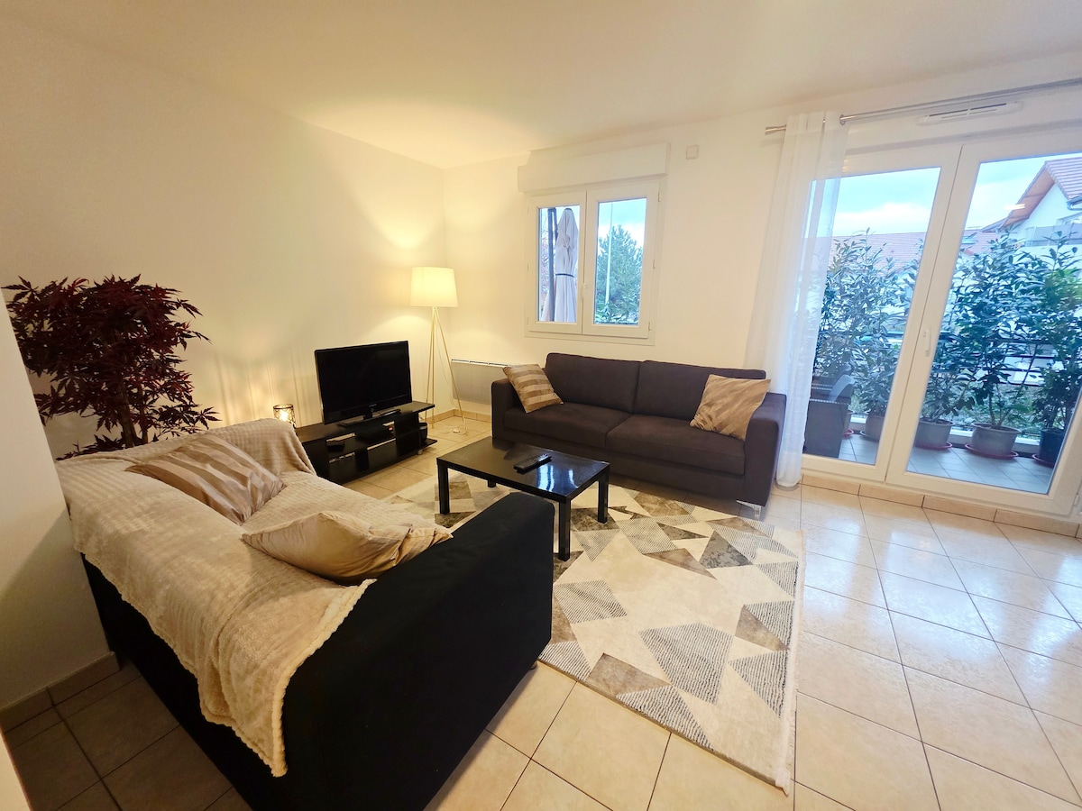 EMbnb A57 | 제네바에서 5분 거리에 위치한 파티오가 있는 T2 디자인