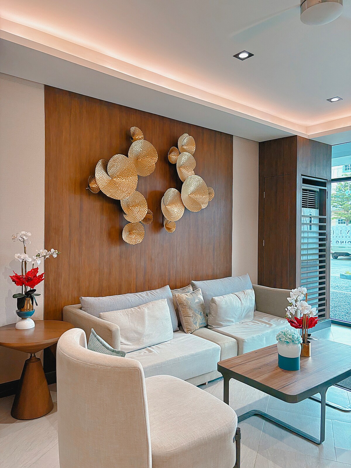 Relax and recharge in this cozy and comfortable studio apartment curated to have elements of nature to provide a sense of calm and tranquility. Located at the heart of the city, you can enjoy easy access to malls, restaurants and coffee shops. Our space offers a stylish retreat with an equipped kitchen, dining space, living area with a sofa bed that can accommodate additional guest, and a private balcony perfect for enjoying morning coffee or evening drinks.