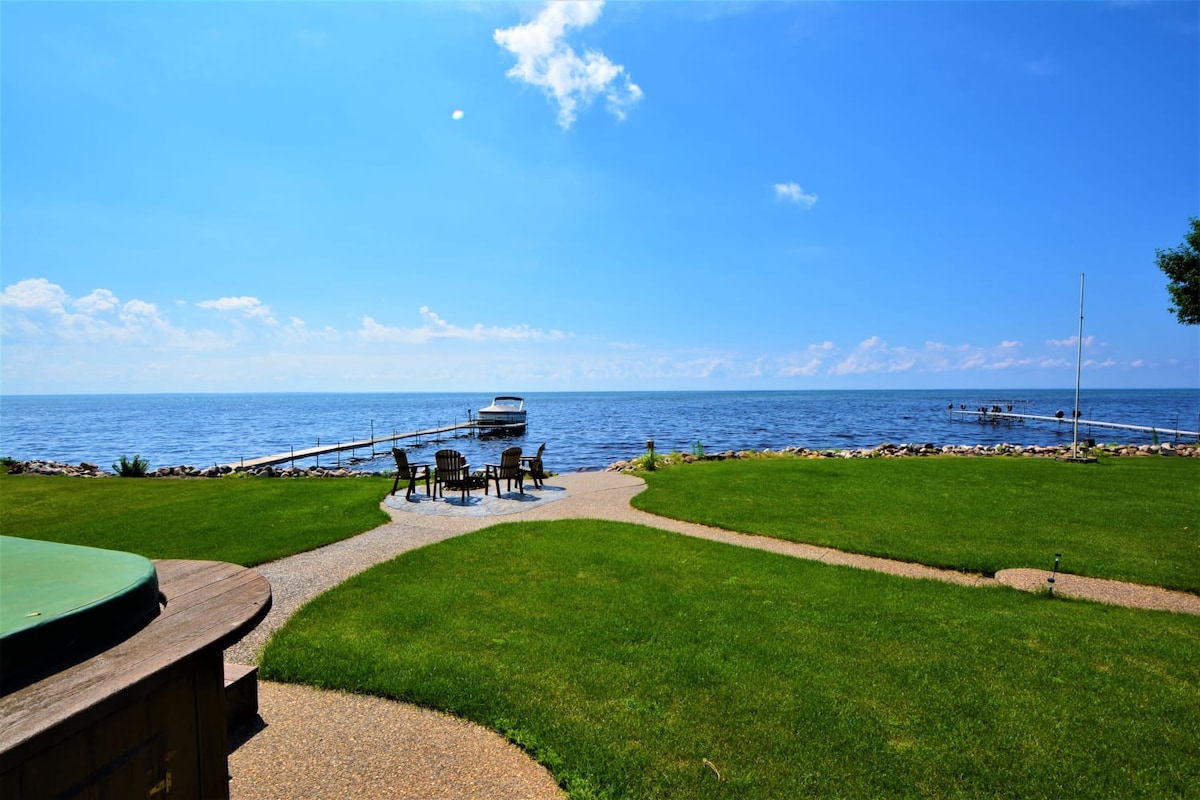Escape to the Bear Cub Lodge on Mille Lacs Lake's north shore for a relaxing getaway. Admire the breathtaking views from the wall of windows and south-facing patio. This family & dog-friendly cabin boasts a fully stocked kitchen, wood-burning fireplace, and gameroom. Enjoy fishing, swimming, boating, bonfires, and yard games. Nearby activities such as snowmobiling, hiking, biking, golfing, shopping, restaurants, & brew pubs. Right off the North Mille Lacs trail & 1.6 miles to public boat launch.