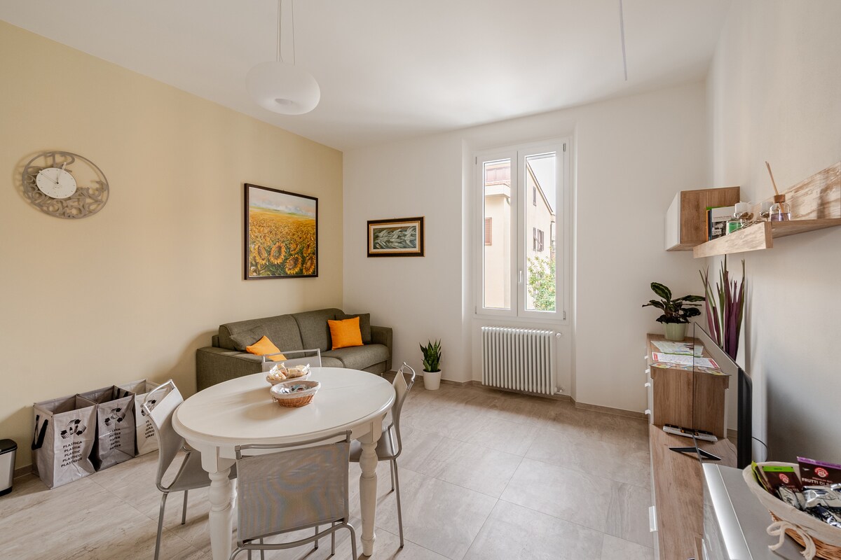 Quite and luminous studio to sleep 2, located on the left side of the river Arno, only at 30 yards/meters from Ponte Vecchio. The studio is on the third floor with lift and has a living room with parquet floor and a real double sized bed, bathroom with shower and fully equipped kitchenette! the double glaze window is overlooking the main street and the bathroom window has mosquito net , it is also provided of air conditioning/heating, Wi-Fi connection and tv wall mount for all your conforts