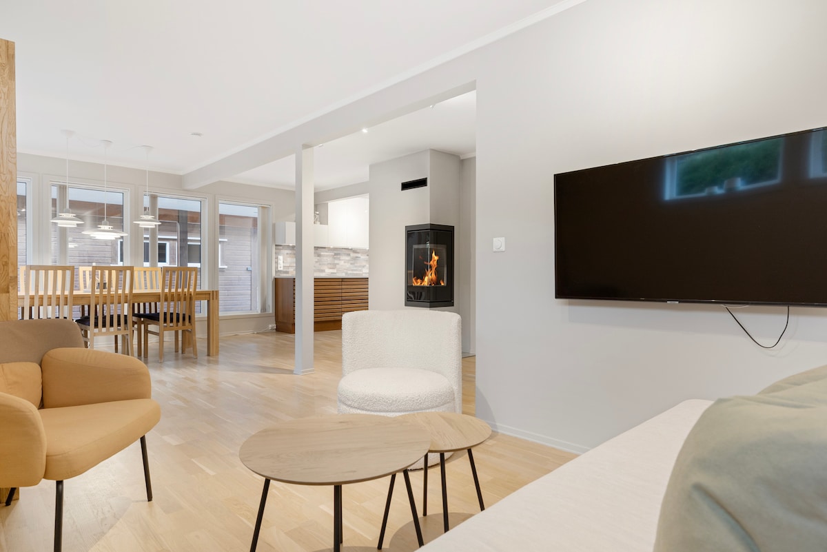Nordic Dreams의 테라스 하우스에 오신 것을 환영합니다. 톤스베르 시내 중심지에서 6분 거리에 있는 조용한 환경에 위치한 현대적이고 넓은 숙소입니다. 이곳에서는 빛, 편안함, 햇살이 잘 드는 야외 공간을 즐길 수 있습니다. 이 숙소에는 벽난로가 있는 개방형 거실과 주방, 침실 3개, 샤워기와 욕조가 있는 멋진 욕실, 그리고 여러 개의 테라스가 있습니다. – 보호된 정원 코너부터 전망이 좋은 대형 선 테라스까지.