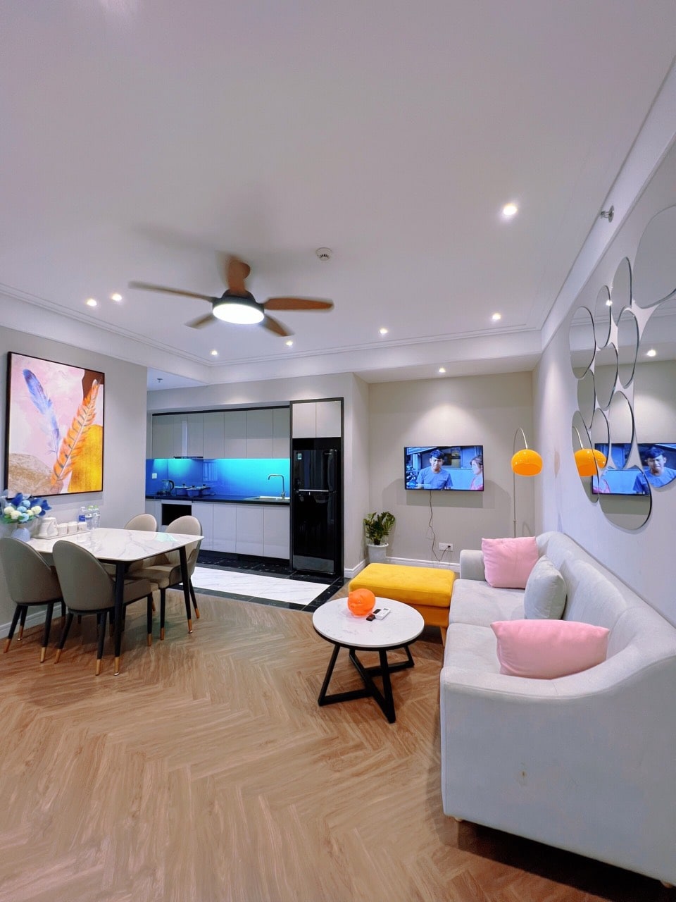 The apartment has 2 bedrooms, 2 wc, and fully equipped kitchen, washing machine, iron... This building is only 200m from the sea, located in the city center. The area around the building is quiet and safe. From here, it only takes 5 minutes to walk to the beach. The local market is just a 5-minute walk from the building. If you come here for a business trip, the apartment has a high and stable internet connection, you can work and rest assured while here.