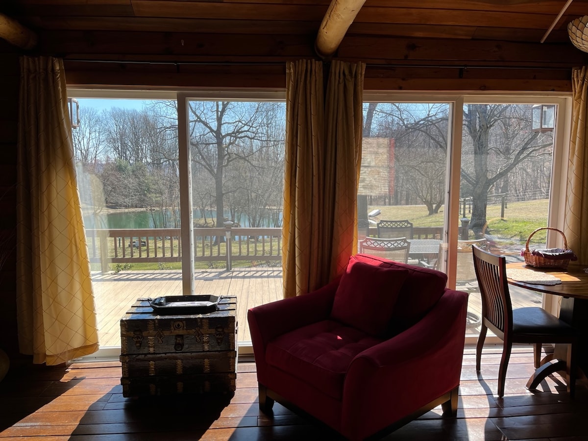 Welcome/todos son bienvenidos~Hot tub/365 days/yr~Pool is seasonal. A romantic getaway. Comforts/amenities of a cabin with an atmosphere of camping. Experiential get-away/private gated/fenced property. Gazebo~panels, furniture,gas firepit & hot tub. Detached bathroom behind cabin.Outdoor shower, Hammock, BBQ’s, Wood firepit. Reconnect w/the outdoors.Queen bed w/firm mattress.Escape the cities to privacy. Abutted on 3 sides by a farm/pasture views.Easy to get to from points east in NYC & Philly