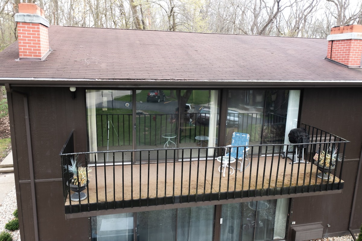 4 mi to Downtown Lake Geneva, WI. Rent kayaks on Lake Como. New pool and tennis courts, amazing wildlife. Snowboard, cross country ski, sled on hills during our amazing Wisconsin winters. Dine at The Ridge restaurant CRAFTED or just buy a bottle of wine from the guest store and watch the sunset. Quiet corner of the condominium complex. Completely furnished. Beautiful comfortable King size bed, kitchen, cook and eat in! Balcony overlooking peaceful grounds. Private entry, laundry in building.