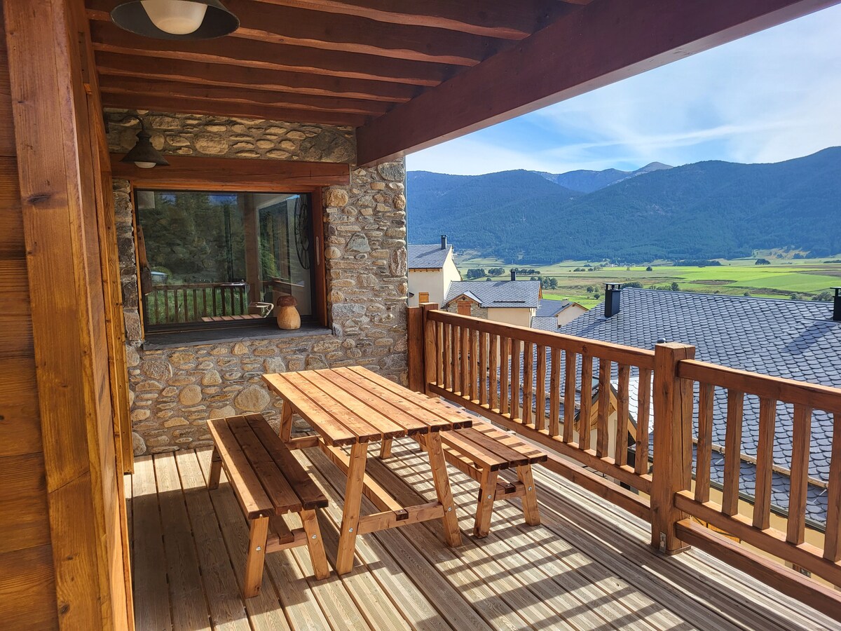 Notre grand duplex de 110m2, classé 3 étoiles, au calme, vue sur les montagnes, cheminée,terrasse, cours, proche du centre ville et ses commodités A moins de 10 min de la station de ski familiale de Formigueres, 11 minutes de la station Les Angles ou lac de Matemale 5 /10 minutes à pied du centre ville de Formigueres (supérette, boucher, boulanger, restaurants, loueur de ski, ferme bio…) Duplex de décoration soignée dans l’esprit montagne, tout équipé pour un séjour reposant à la montagne