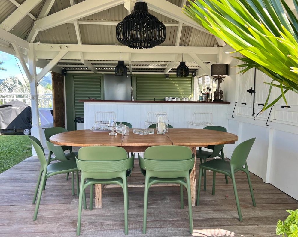 공항에서 5분, 아름다운 해변에서 10분 거리에 위치한 평화롭고 녹지가 풍부한 환경에 자리 잡은 방갈로에 오신 것을 환영합니다. 이 코쿤에는 에어컨이 설치된 침실, 욕실, 별도의 화장실, 시설이 완비된 주방이 있습니다. 수영장 옆에 떠 있는 듯한 트레이, 선베드, 식사 공간이 마련되어 있어 편안한 휴식을 즐길 수 있습니다. 섬의 북쪽과 남쪽을 둘러볼 수 있는 중심지에 위치한 방갈로는 열대 모험을 즐기기에 완벽한 장소입니다.