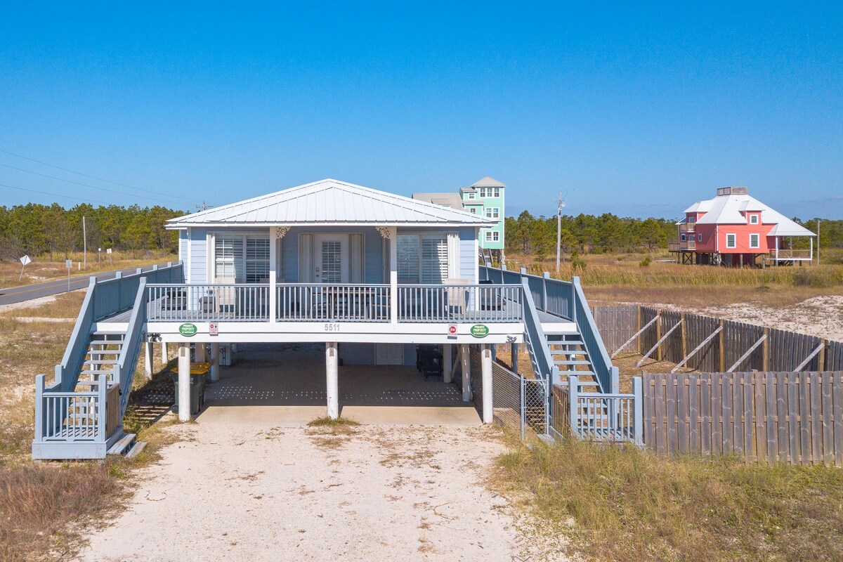 ✔ Directly Across From Beach ✔ All Dogs Welcome, Dog-Friendly Beach ✔ 4 Bedrooms, 2 Bathrooms – Sleeps Up to 10 ✔ Unobstructed Ocean Views from Wrap-Around Deck ✔ Full Putt Putt Course & Corn Hole Under the House ✔ Spacious Deck with Adirondack & Lounge Chairs + Outdoor Shower ✔ Beach Wagon, Chairs, Toys & Boogie Boards Provided ✔ 5 Minutes to Local Restaurants, 20 to Downtown Gulf Shores ✔ High Chair, Pack ’n Play, Linens, Towels & Soaps Included