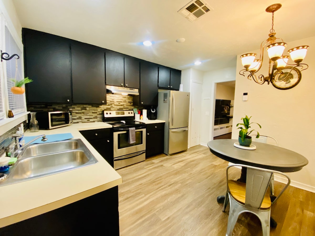 이 숙소는 단기 또는 장기 숙박에 적합한 숙소입니다. 깨끗하고 시설이 완비된 주방과 와이파이. 모든 침실에는 보호 매트리스와 베개 커버가 마련되어 있습니다. 집안 곳곳에서 자연광에 깨어난다. 불 옆과 나무 아래에서 휴식을 취하고 휴식을 취할 수 있는 아늑한 분위기를 제공하는 뒷마당입니다. 스마트 TV는 넷플릭스 및 기타 스트리밍 서비스를 이용할 수 있는 마스터 침실과 거실에 있습니다.