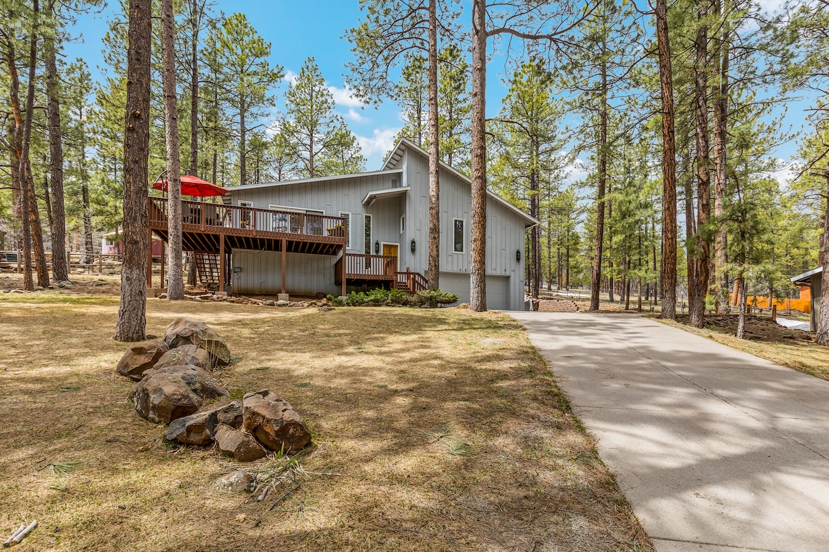 최근에 리모델링한 침실 3개/욕실 2개 1600평방피트 숙소로 스노우볼 분기점의 알파인 메도우에 위치하고 있습니다. 플래그스태프 시내까지 12분, 스노우볼 베이스까지 15분, 그랜드 캐니언 남쪽 림과 세도나까지 약 60분 거리에 있습니다. 차고에 있는 240V/50A 콘센트에 전기차를 연결할 수 있습니다. 초고속 와이파이, 유튜브 TV. 국립 숲 접근/문 바로 앞에 끝없는 산책로! 온수 욕조에서 바로 샌프란시스코 봉우리의 탁 트인 전망을 감상할 수 있는 2에이커 규모의 초원에서 4계절 내내 평화롭고 조용한 경험을 해보세요!