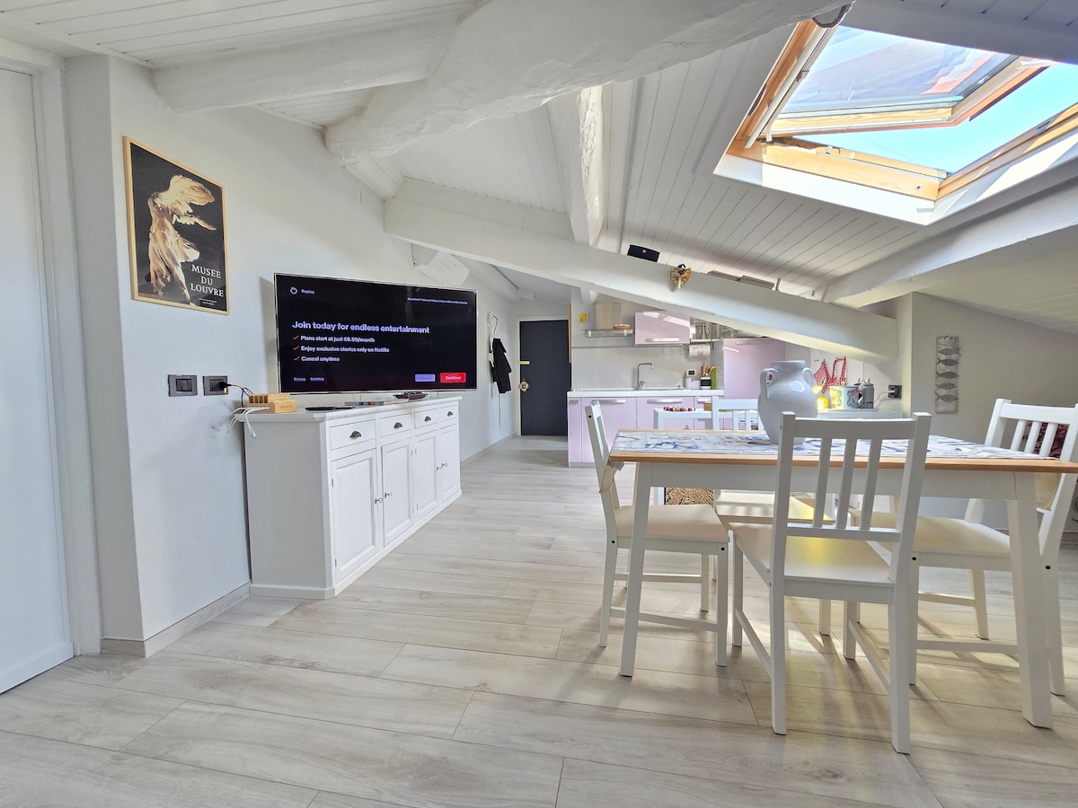 완전히 리모델링한 다락방은 아늑하고 밝으며 취향과 스타일이 담긴 가구가 있습니다. 중심지에 위치해 있으며, 시설이 갖춰진 해변과 유명한 산책로에서 100미터 거리에 있습니다. 200미터 이내에 상점, 바, 레스토랑과 모든 유용한 서비스가 있습니다. 엘리베이터 없이 3층과 마지막 층에 위치해 있습니다.