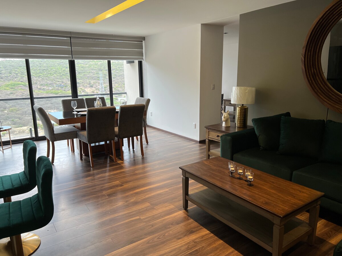 Departamento privado en Centro Sur, de ambiente fresco e iluminado Excelente para Ejecutivos, Ingenieros o Estudiantes Cuenta con cama King, Smart TV, Internet Fibra, Baรฑo Privado, Comedor para 4 personas, Refrigerador, Microondas, Cafetera, Tostador, plancha Cuenta tambiรฉn con Aire Acondicionado 1 Estacionamiento Cercado con Portรณn Elรฉctrico Centro Sur/Colinas del Cimatario son muy tranquilos y seguros con todo cerca Accesible a las principales avenidas, zona de poco trafico