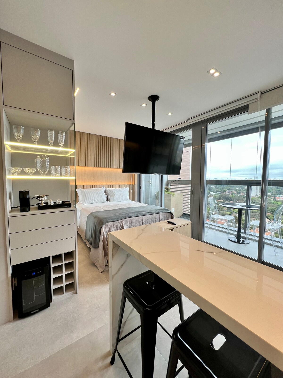 파노라마 전망을 자랑하는 새로운 스튜디오 — 24층에 인피니티 풀과 스타일이 있습니다! 사랑을 담아 여러분을 맞이하기 위해 준비된 저희 스튜디오에서 편안함과 스타일을 즐기며 상파울루를 즐기세요. *피네이루스 고속도로의 180° 유리 전망*을 자랑하는 24층에 위치해 있습니다. 도시에서 실용성과 편리함, 독특한 경험을 찾는 사람들에게 이상적인 현대적인 휴양지입니다.