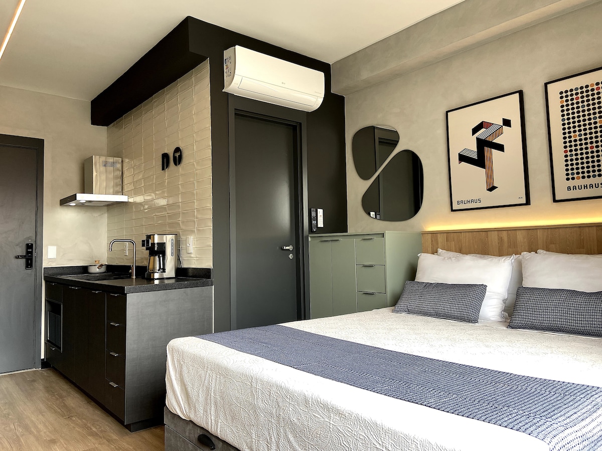 파울리스타 근처의 새롭고 기술적인 아파트, 지하철로 7분 거리, 에어컨 완비