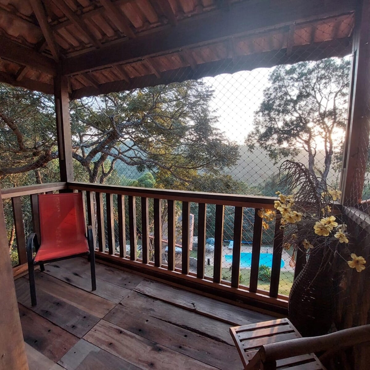 칸타레이라 산맥의 통나무집, 수영장과 벽난로