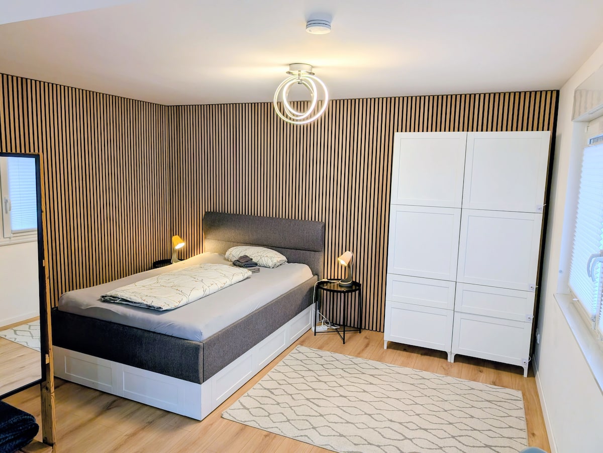 이 2룸 럭셔리 지하 아파트는 쾰른 근처의 풀하임에 있으며 쾰른에서 차로 22분 거리에 있습니다. 도시와 출장 모두에 적합합니다. 무료 주차도 포함되어 있습니다. 다음은 숙소에 대한 정보입니다. - 크고 세련된 거실 - 퀸사이즈 침대와 소파 베드가 있는 대형 침실 - 시설이 완비된 주방 - 레인 샤워기가 있는 대형 욕실 - 많은 큰 창문을 통해 자연광이 많이 들어옵니다 (사진 참조)