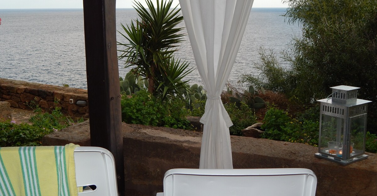 Dammuso immerso nel Parco Nazionale Isola di Pantelleria a pochi metri dal mare di Cala Rotonda. La caletta si raggiunge in meno di tre minuti a piedi, percorrendo un sentiero. La vista dal terrazzo è spettacolare, le limpide acque virano di colore, dal verde smeraldo al blue cobalto, vera cromoterapia naturale. Aria condizionata autonoma. Parcheggio privato.