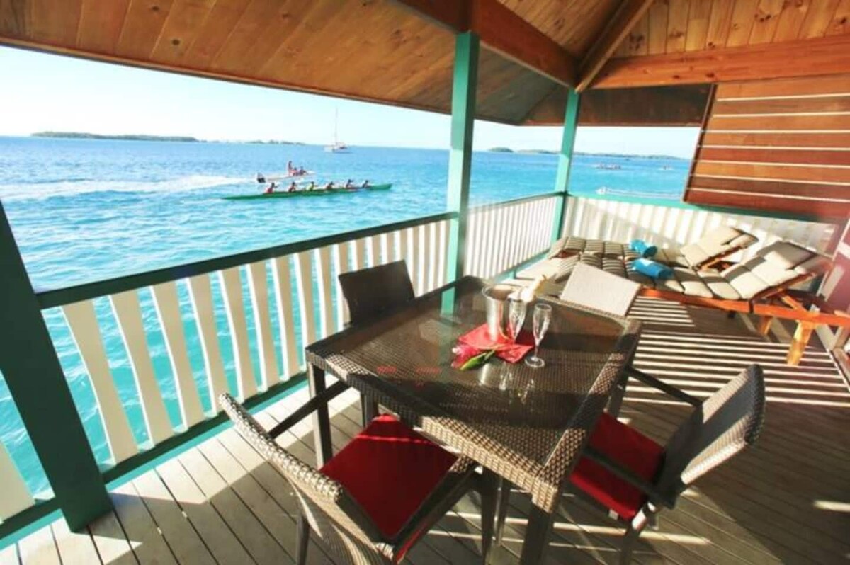 개인 소유의 듀플렉스 방갈로, 국제공항 및 섬 간 차로 10분 거리. 수영을 즐길 수 있는 라군 위에 있는 부두가 있는 전용 테라스. 파레 바이마에서 100미터 거리에 있는 모래톱으로 가는 산책과 접근을 위한 카약 2대. 1층에는 주방 공간 + 식사 공간 + 욕실이 있습니다. 위층에는 무어라와 화려한 일몰의 탁월한 전망을 자랑하는 넓은 에어컨 완비 침실과 테라스가 있습니다. 24시간 영업하는 슈퍼마켓이 도보로 10분 거리에 있습니다.